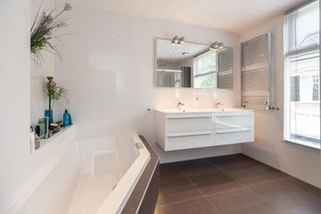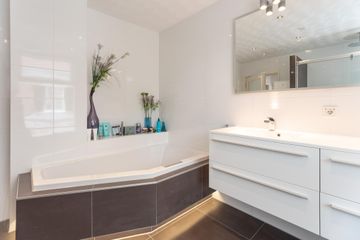• Moderne badkamer met ligbad, douche en dubbele wastafel