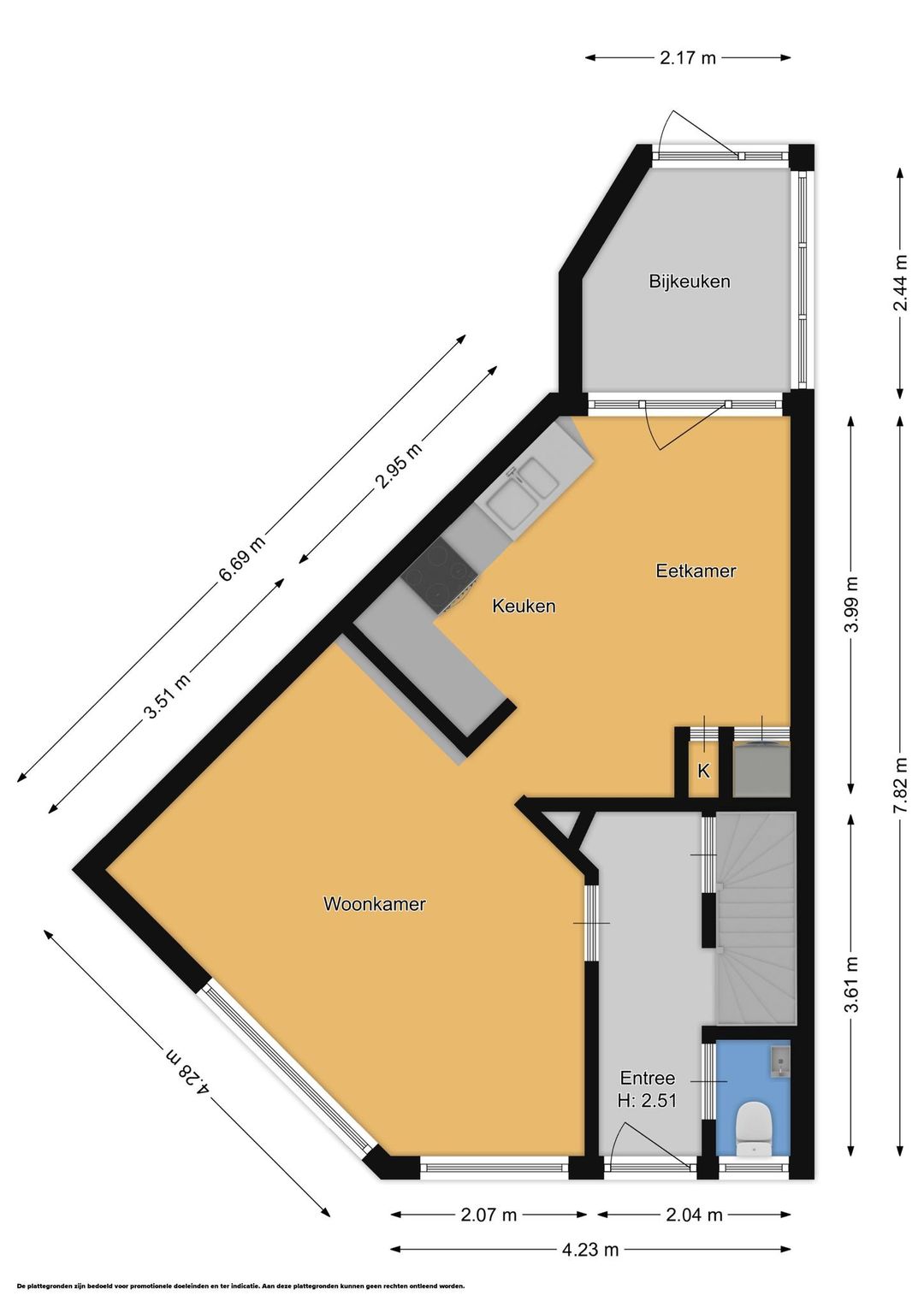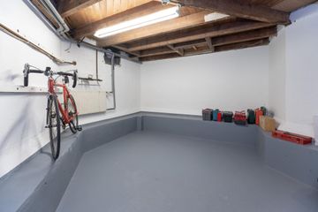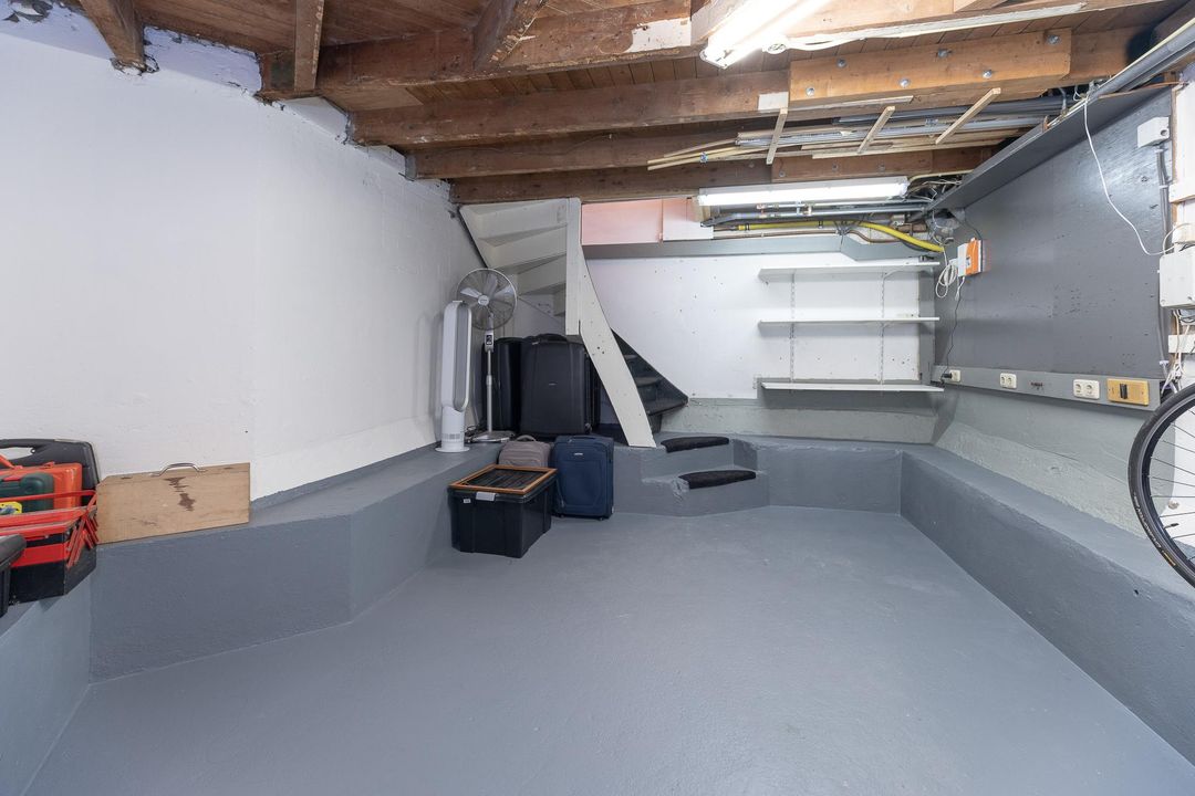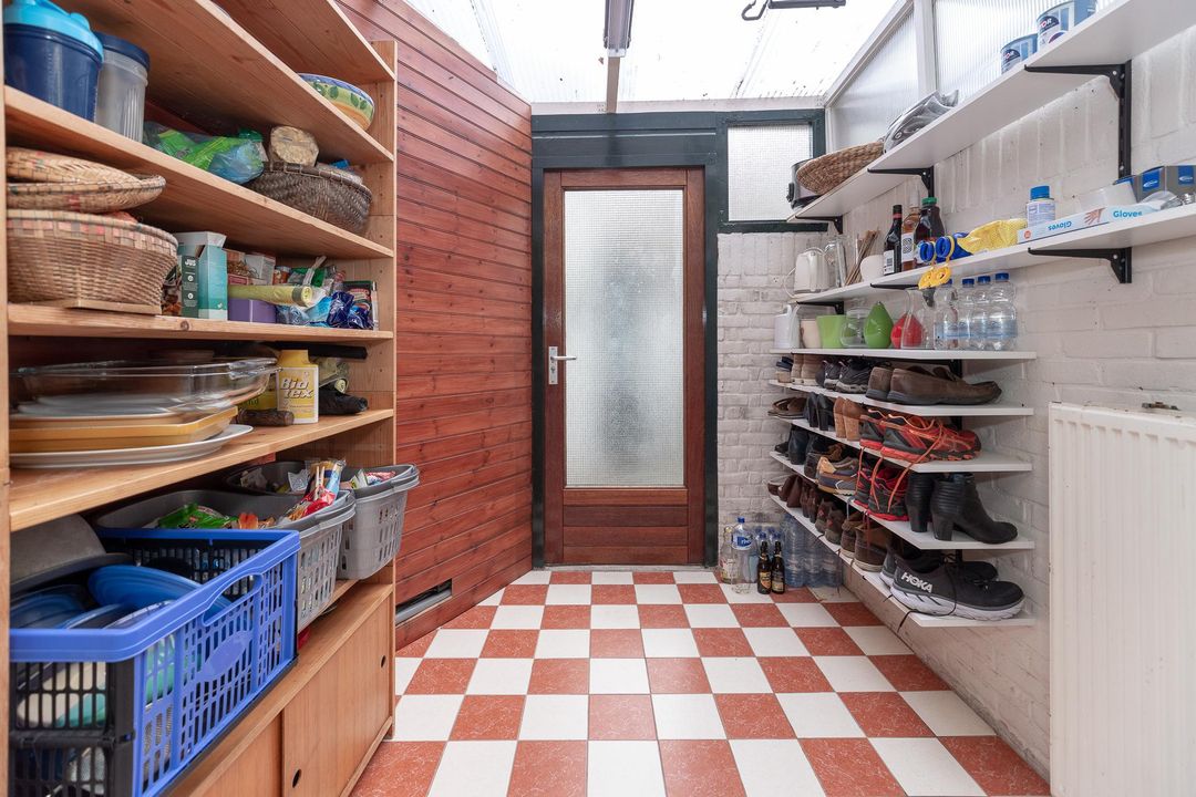Entree, hal, meterkast, toilet met fontein, lichte woonkamer, halfopen eetkeuken met diverse apparatuur en kast met aansluiting voor wasmachine en droger, aangebouwde verwarmde schuur met achterom, ruime kelder van circa 20 m2 voorzien van elektra.