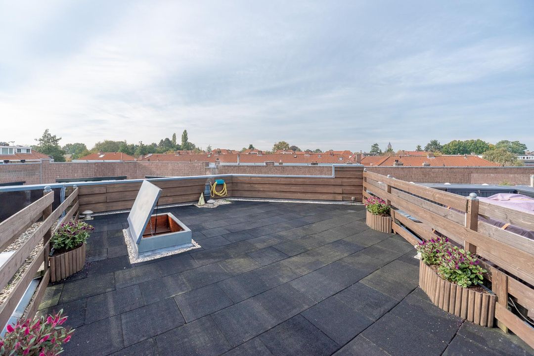 Via een vlizotrap op de overloop is het zeer exclusieve dakterras (circa 40m2 groot) met fantastisch uitzicht over Bussum bereikbaar.