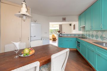 Deze woning is doordat hij in een “knik” gebouwd is, speels ingedeeld en dient beslist van binnen gezien te worden.
