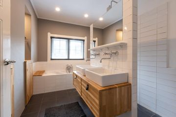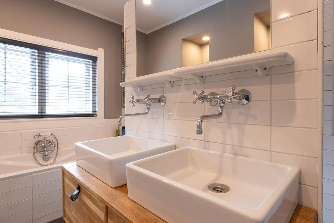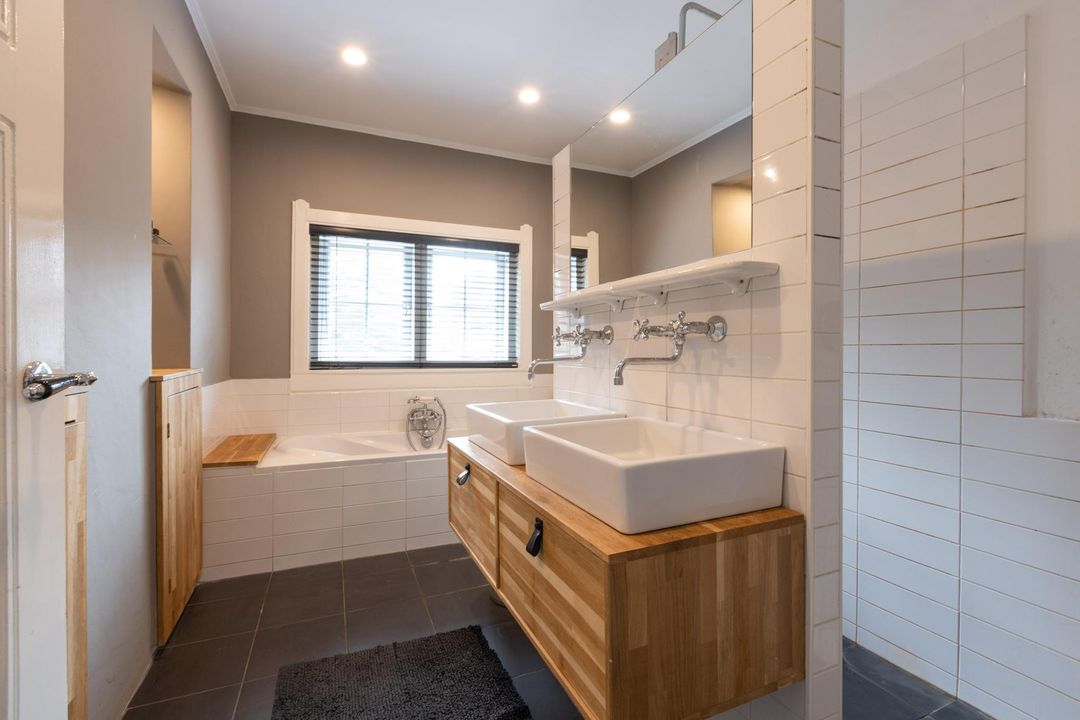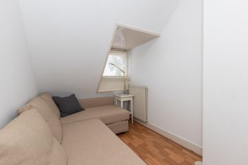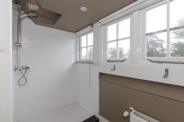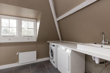 Royale overloop met bergkast, tweede badkamer met douche, wastafel, wasmachine/drogeraansluiting en c.v. opstelling, twee slaapkamers (beide met dakkapel).