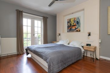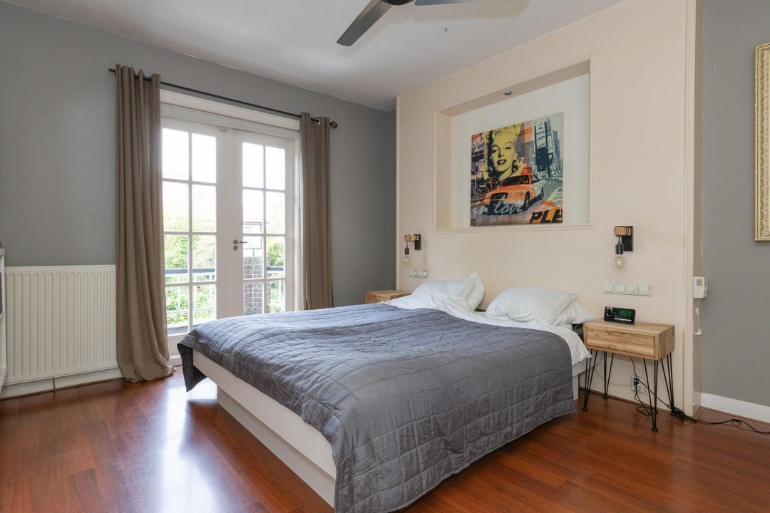 Overloop, slaapkamer aan de voorzijde met openslaande deuren naar het balkon en doorloop naar kledingkamer, tweede slaapkamer aan de achterzijde met vaste kasten, badkamer met ligbad, inloopdouche en dubbele wastafel, separaat toilet.
